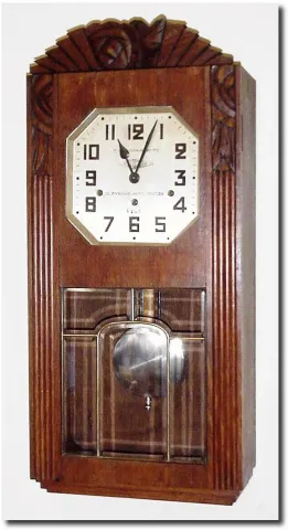 C.1935, French Westminster Chime wall clock, in Art Deco style.