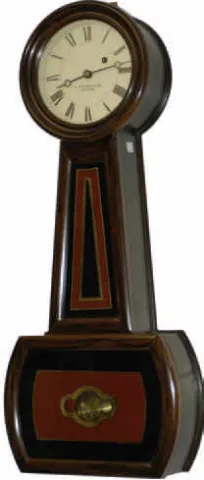 Identical in every way to the early Howard banjo, including glasses, dial, 8 day time only movement, weight, and all accessories. The dial is signed, ...