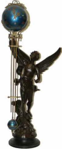Mystery clock, a reproduction of the large French swinging arm clocks made in the late 1800's. This is an excellent copy that some folks find difficult to distinguish from an original.