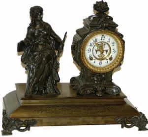 Another clock from the same collector. The top metal is dark, probably a Syrian Bronze finish. The base which is normally enameled black on iron is th...