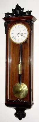 C.1840, Austrian, Biedermeier 1-wt wall timepiece, 8-day, in a rosewood veneered case.