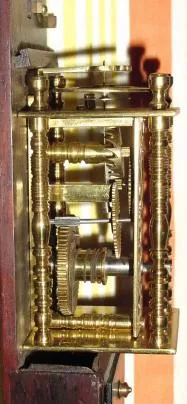 C.1840, Japanese, Stick clock, 1-wt timepiece, top balance with crown-verge escapement and skeletonized front plate, in rosewood case.