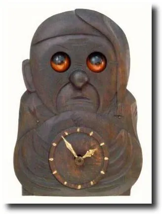 the eyes rotate while the clock runs. Carved wooden face of a "sad sack" ready for bed with stocking cap on. We had a similar one of these in the Nov ...