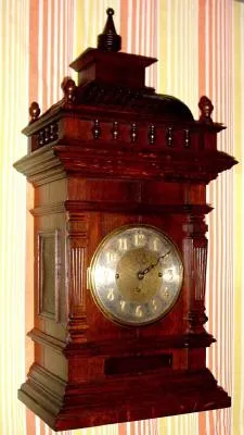 Condition: heavy and well made movement is ticking and chiming melodiously, signed at base of rear plate W+H, Schl. The large and heavy oak case has b...
