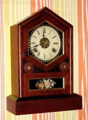 C.1875, Jerome and Co. (New Haven Clock Co.), 8-day time/strike/alarm shelf clock.