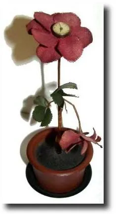 the dial of which is the center of the dark red cloth flower at top. Wind and set one day movement from base. We've not had one of these unusual novel...