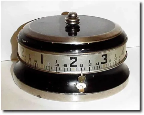 C.1948, Lux Annular Dial, or "Tape' Clock in very good condition. Many times these are rusty and used to death, but this one retains original black paint (they came in several colors), has a good dial, and even seems to run OK. Diameter 4.8'