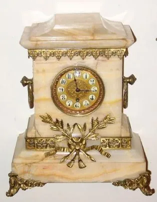 Condition - French style marble case is in very nice condition with a small chip on the back edge of a marble side molding and a small chip on one cor...