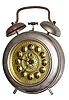 Condition: Nickel-plated case is in good condition with some tarnish that is primarily on the bells and handle. Gold tone dial is very clean and hands...