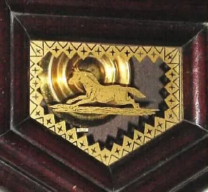 Condition: the celluloid veneer is in excellent condition; movement is complete and sound and clean; interesting case style with lions in and metal pi...