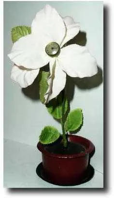 the dial of which is the center of the silk flower. Note this lot and the next lot have both had new plastic leaf/silk flowers attached to the origina...