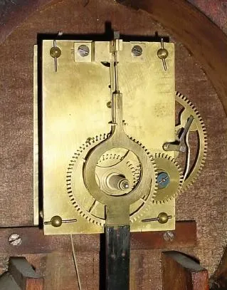 Mixed lot: C.1920, a paneled oak cabinet, now with an Ithaca, NY chain drive, 8-day striking movement, mounted on wooden blocks, with new paper dial, and the cabinet secured to a plinth from a C.1840 tall case clock.