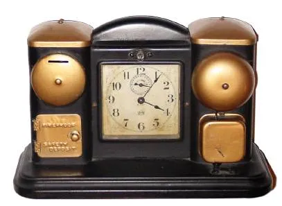 Condition: Metal case has been spray painted; otherwise in good condition and was combination timepiece, alarm clock and savings bank. Note this compa...