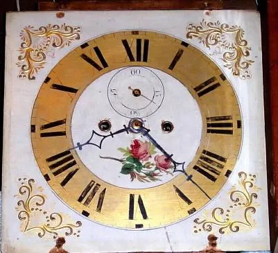 Condition: the early movement to this clock has not been serviced in many years and is quite dark. The porcelain dial has some scratches and hairlines...