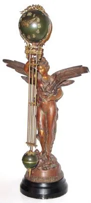 C.1901, Ansonia Clock Co., GLORIA BALL SWING, 8-Day mystery swinging timepiece, the movement contained within the ball of the arm.