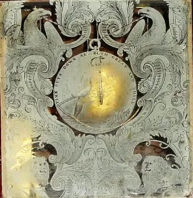 Condition: the movement has had some damage and repair, and has an unexplained empty pivot hole. Mirror is old but replaced. Top glass is cracked. Bac...