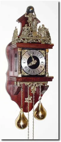 C.1970, Dutch Reproduction Wall Clock, with eight day West German movement, striking on the bell that supports Atlas on top the clock.