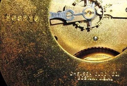 Condition: Cast white metal case that originally had a bronze type finish, is now over-painted with a layer of faded gold paint. Original porcelain di...