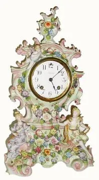 Condition: New Haven timepiece case is in nice condition with some loss to the applied gold. Paper dial has darkened a little and the glass covering t...