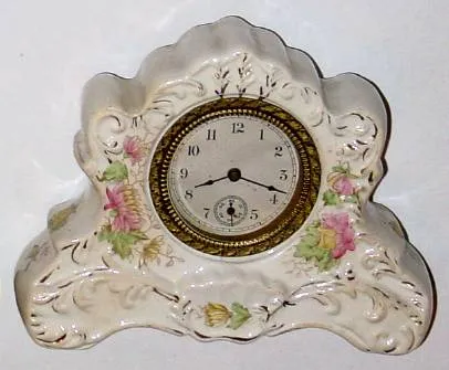 Lot of two: C.1905 New Haven Clock Co., 30-hour lever movement porcelain timepieces.