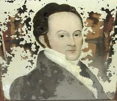 Condition: the lower glass is a replacement; the original center glass with paint loss in the margin, top right. The eagle finial is from a New Haven ...