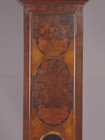 Condition: The 8" silvered dial is engine turned, although much of the pattern is worn away at this point. There is a sunken seconds bit turned right ...
