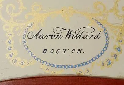 C.1985 (modern) Repro Mass Shelf Clock, Westminster Chime, the dial signed Aaron Willard, Boston.