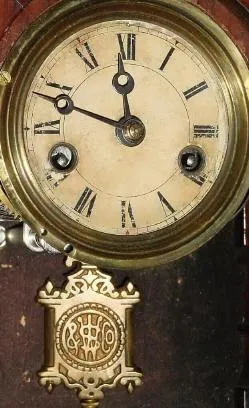 C.1885, German, Jahresuhrenfabrik, 400-Day clock with disc pendulum, short model, same size as 1882 production, but without Harder patent info on dial.