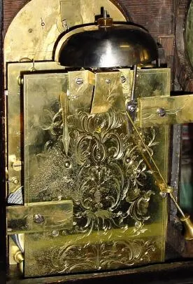 Condition: Mahogany case with inlayed decorative design is in very fine condition with a just little wear to the original finish on the base moldings;...