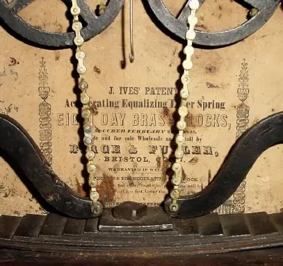 C.1827, Samuel Abbott, Boston, Federal Mirror clock, 8-day timepiece with restrained weight on rod followers.