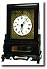 Chinese Bracket Clock Circa 1865. Hand-carved mahogany case with double fusee chain-driven 8-day mechanical movement with crown wheel escape and engraved brass chapter ring around porcelain dial. Sweep second hand. - Dimensions: 12"h x 8"w x 6"d. Additional keywords: table