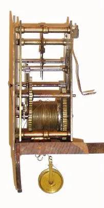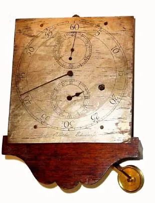 Condition: although the case has been refinished and both scroll tips broken and repaired, it is otherwise a good clock with a super dial with "sunris...