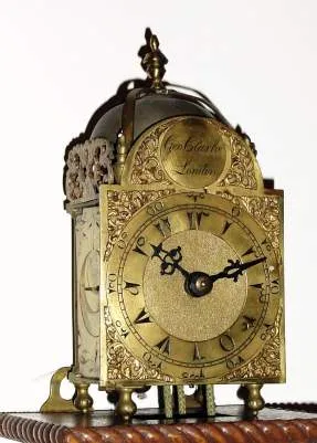 C.1850, English, Geo. Clarke, London, miniature, short pendulum lantern clock for the Turkish market.