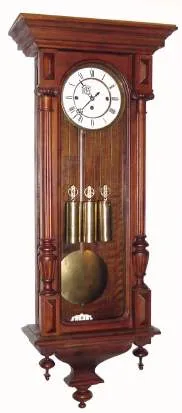 C.1895, German, Junghans, Grand Sonnerie, 3-Wt wall clock, in a walnut case, with carved Corinthian half columns to the side, in the Alt Deutsch style.