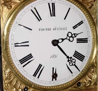 C.1891 [dated on dial], Prucure Generale, Grand Sonnerie, 3-train Morbier, with 5 bells (ting tang quarters and hours, large bell for top of the hour).