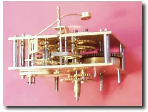 Continental Picture Frame Clock, early 19th century Case: Reverse painted glass with gilded frame; 14.5" wide, 12" high, 4.5" deep . Works: Original signed two train with barrel springs. 30 hour movement with hour strike and single strike on half hour. German or Austrian. Condition: Case; Excellent. Works; Excellent, cleaned, some old repairs.