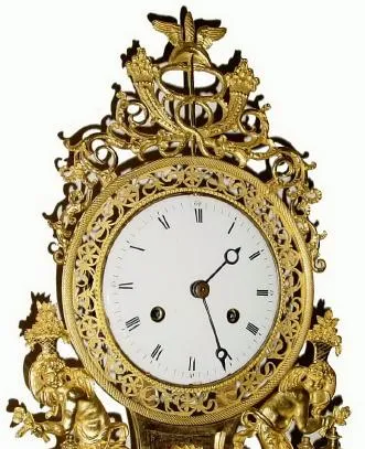 C.1860, Ansonia Brass Co., Ansonia, Conn, SHARP GOTHIC, or steeple clock, 30 hour time and strike in a striped mahogany case.