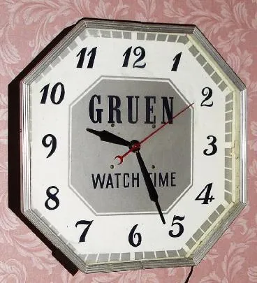 C.1939, Gruen Watch Time Advertising electric wall timepiece.