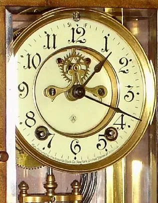 C.1914, Ansonia Clock Co., "Zenith", 8-day time/strike crystal regulator mantel clock.