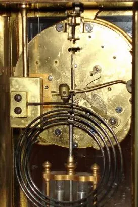 Condition: Cast metal case in nice as found condition with much of the original gilding intact. Original porcelain dial has a hairline crack at the ti...
