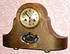 Condition: Formed sheet brass case in an unusual 'artsy' style. One brass foot is missing. Original silvered dial has some tarnish and wear. Hands are...