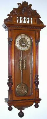 C.1890, German, Junghans, 2-wt Vienna Regulator, 8-day, time and gong strike in a walnut and veneer case, as-found needs work.