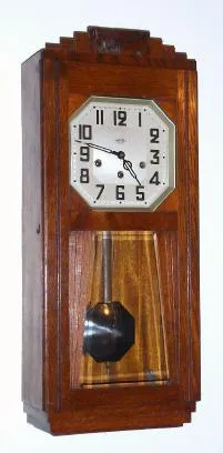 C.1920, French, Girod, Westminster chime wall clock, 8-day, oak Deco style case.