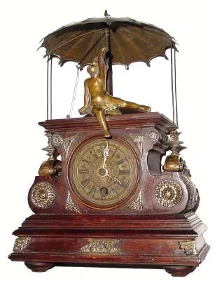 C.1954, German, J. Kaiser "UNIVERSE", 400-Day clock with unique compound pendulum with rotating terrestrial globe.