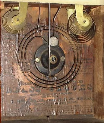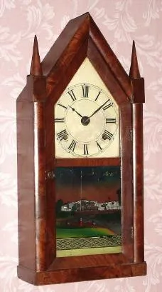 C.1840, C. Boardman and J. A. Wells, Bristol, Conn., 30-hour time and gong strike, 2-fusee steeple clock of unusual narrow proportions.
