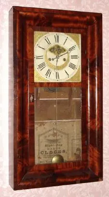 Condition: Mahogany veneered case in very clean condition with some minor veneer loss and repair on the bottom edge. Old finish has been steel wooled ...