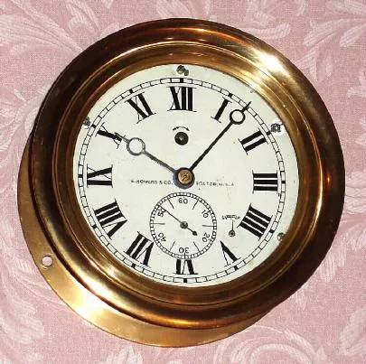 C.1915, E. Howard and Co., Engine Room timepiece, in a heavy red brass case, 6" dial, with seconds hand above 6.