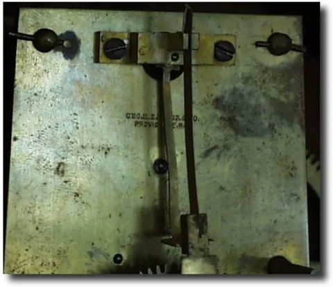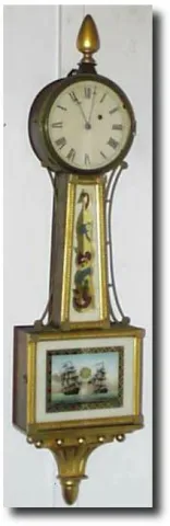 Case: Gilt presentation case, 42" high. Works:Weight driven movement marked Geo E Taylor and Co. Providence, RI; Condition: Case; Excellent, Tablet gl...