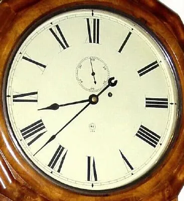 C.1865, William L. Gilbert Clock Co., Winsted, Conn., "Maranville Octagon Drop Calendar", 8-day time and strike calendar clock, restored.