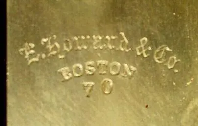 Condition: The case has been nicely refinished to a golden color, some flakes on the dial professionally re-touched; and the name E. Howard re-painted...